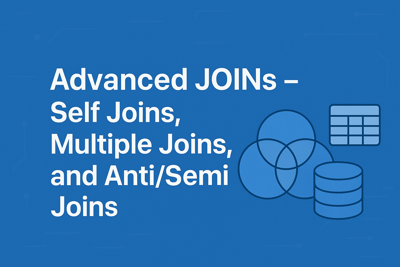 Welcome back! 👋In the last lesson, we learned the basics of JOINs: In this lesson, we’ll explore more advanced JOIN techniques used […]