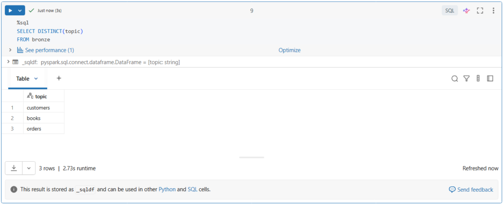 Later in the pipeline, the multiplex bronze table will be filtered based on the topic column to create the silver layer tables.