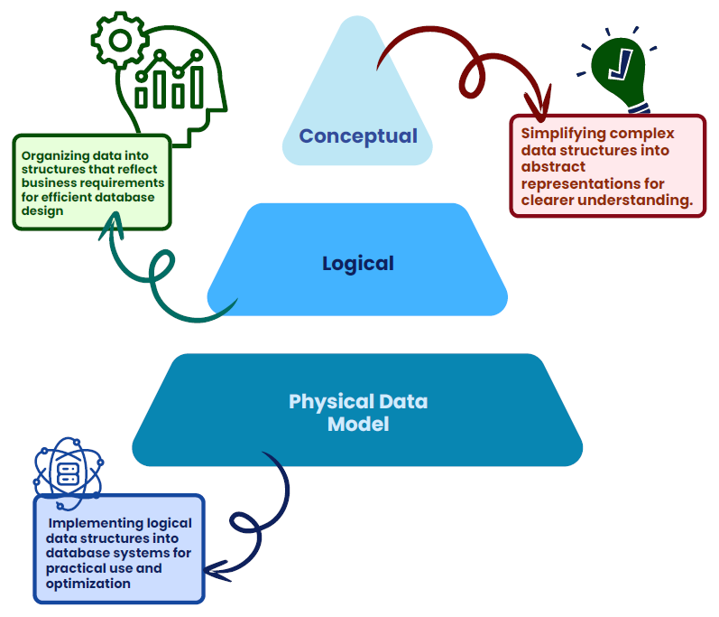 Data modeling: Designing the structure and relationships of data to facilitate efficient storage, retrieval, and analysis, typically represented through diagrams or schemas.