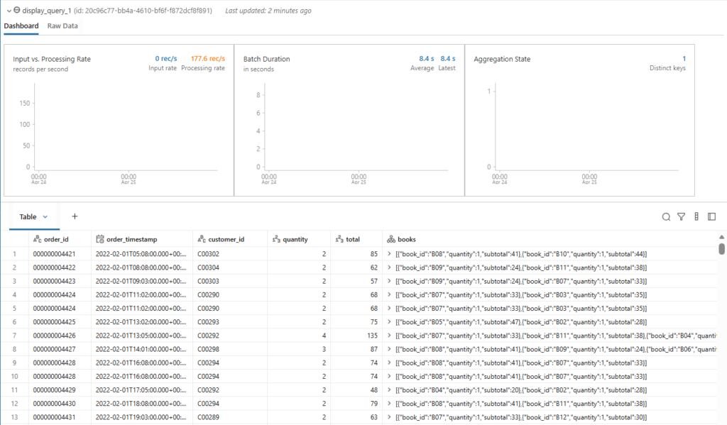json_schema = "order_id STRING, order_timestamp Timestamp, customer_id STRING, quantity BIGINT, total BIGINT, books ARRAY<STRUCT<book_id STRING, quantity BIGINT, subtotal BIGINT>>"