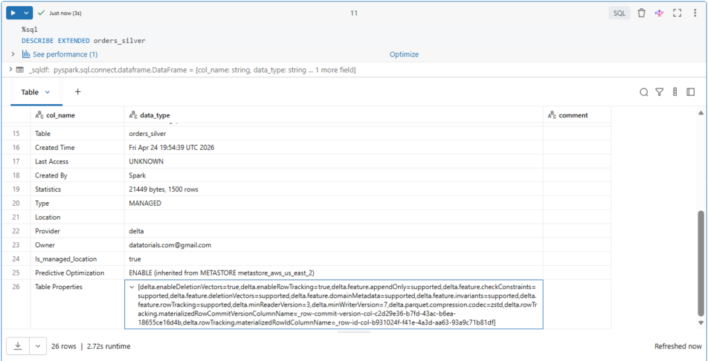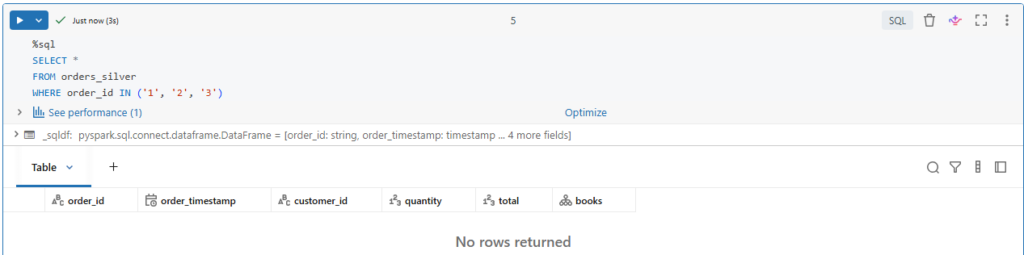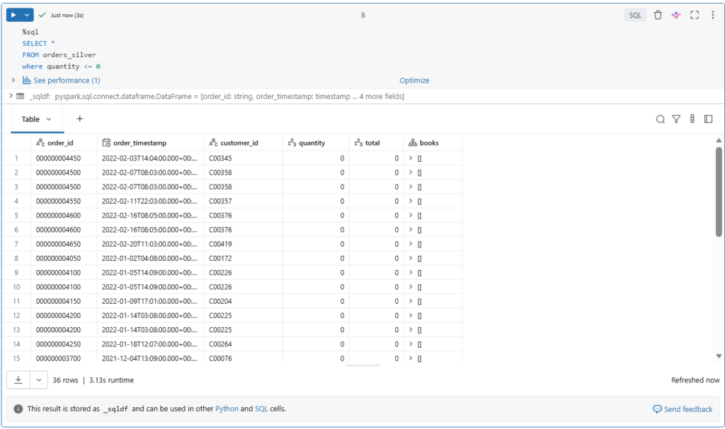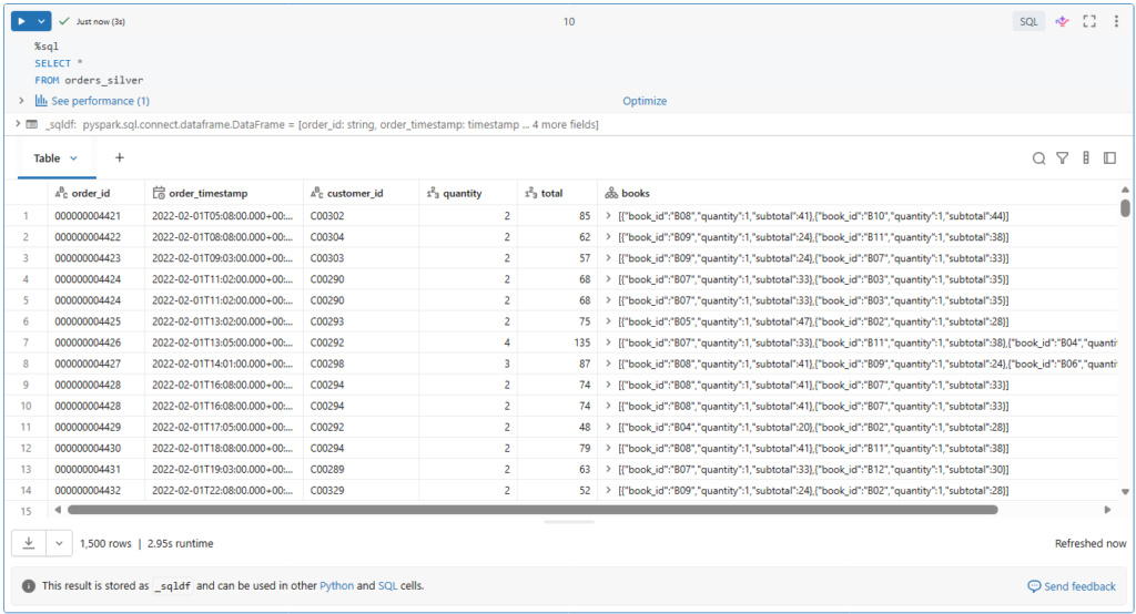 As you can see, our orders records have been successfully processed from the multiplex bronze table into our orders silver table.