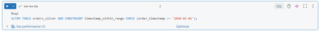 ALTER TABLE orders_silver ADD CONSTRAINT timestamp_within_range CHECK (order_timestamp >= '2020-01-01');