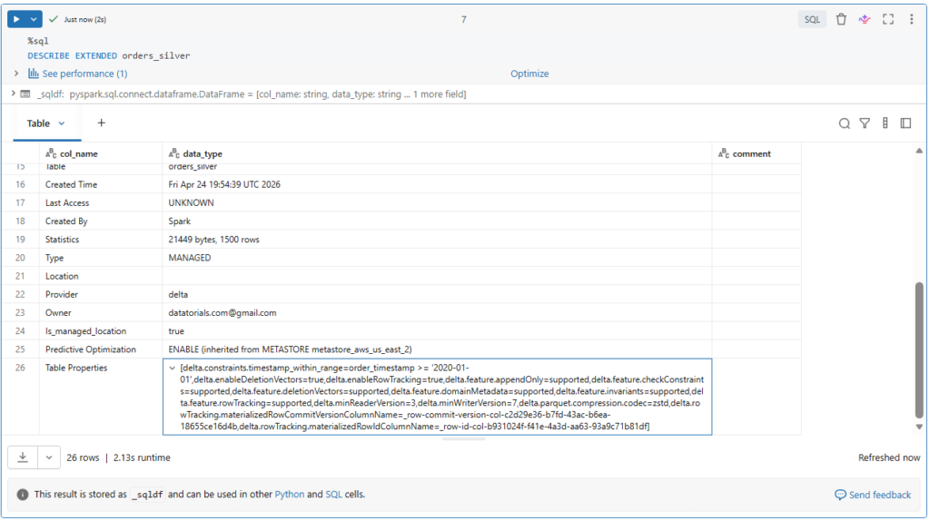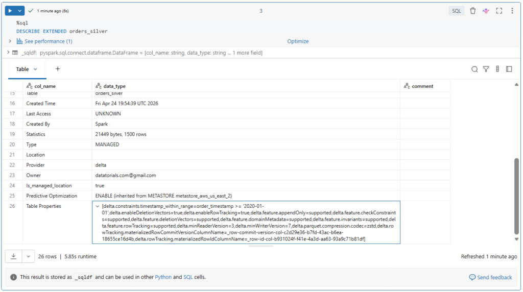 ALTER TABLE orders_silver ADD CONSTRAINT valid_quantity CHECK (quantity > 0);